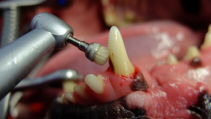 Der Zahngesundheit unserer Hunde schenken wir besondere Aufmerksamkeit, denn die Zähne sollen ein Leben lang halten. Angefangen vom Zahnwechsel der Milchzähne zum permanenten Gebiss, der Beurteilung und Korrektur angeborener oder erworbener Zahnfehlstellungen, der fachmännischen Versorgung beschädigter und frakturierter Zähne, über die Prophylaxe durch Zahnreinigung und Zahnsanierung zur Gesunderhaltung des Zahnfleisches und Zahnhalteapparates, arbeiten wir täglich in der "Höhle des Hundes".